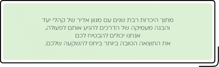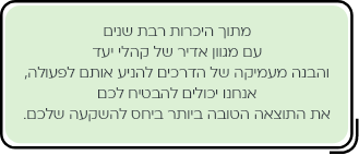 השאירו פרטים כאן לקביעת שיחת היכרות ויעוץ עם הצוות המקצועי שלנו.
