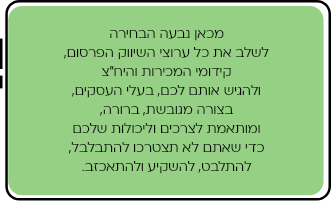 התאמת חבילות לצרכים העסקיים הספציפיים שלכם תוך התחשבות בתקציב ומיקסום ההשקעה שלכם להשגת מירב התוצאות.